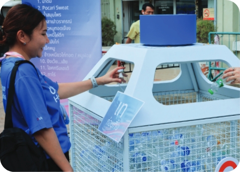 UOB Thailand colleagues recycling water bottles from the run, in line with UOB’s commitment to caring for both people and the planet.